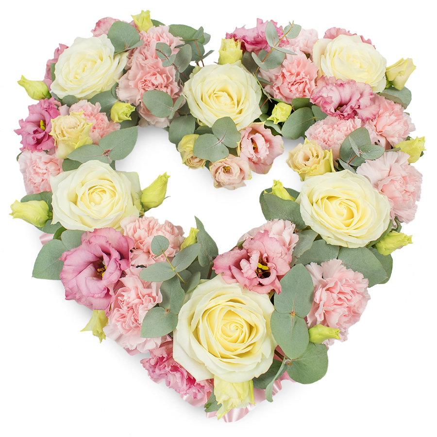 Our Sophisticated Remembrance Bouquet is designed to honor and remember loved ones with grace. This elegant arrangement combines white roses, pink carnations, pink lisianthus, and eucalyptus, artfully arranged to create a timeless tribute.